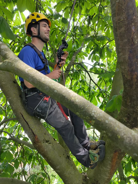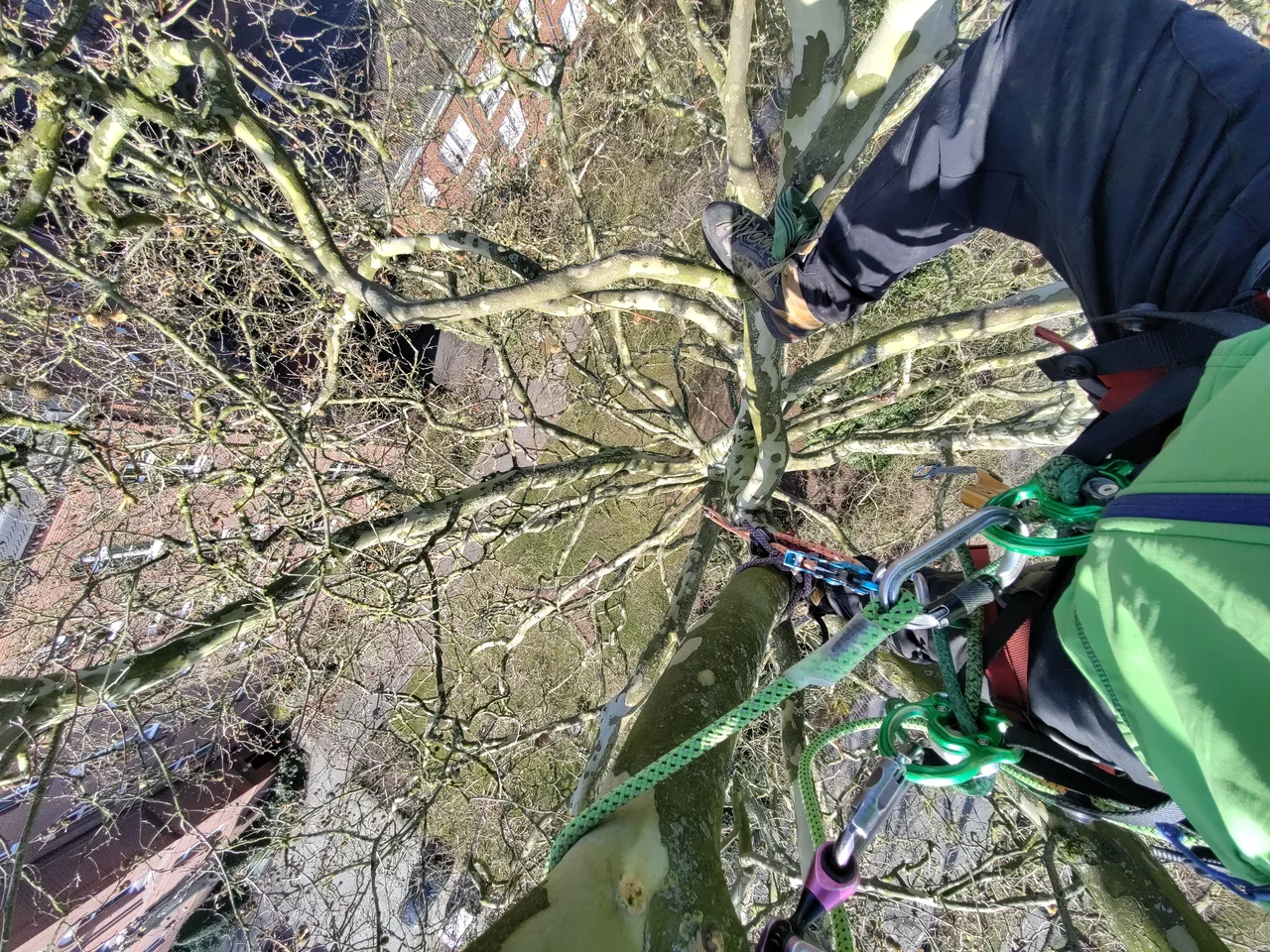 Mit Hilfe der modernen Seilklettertechnik, erreichen wir jeden Ast im Baum.