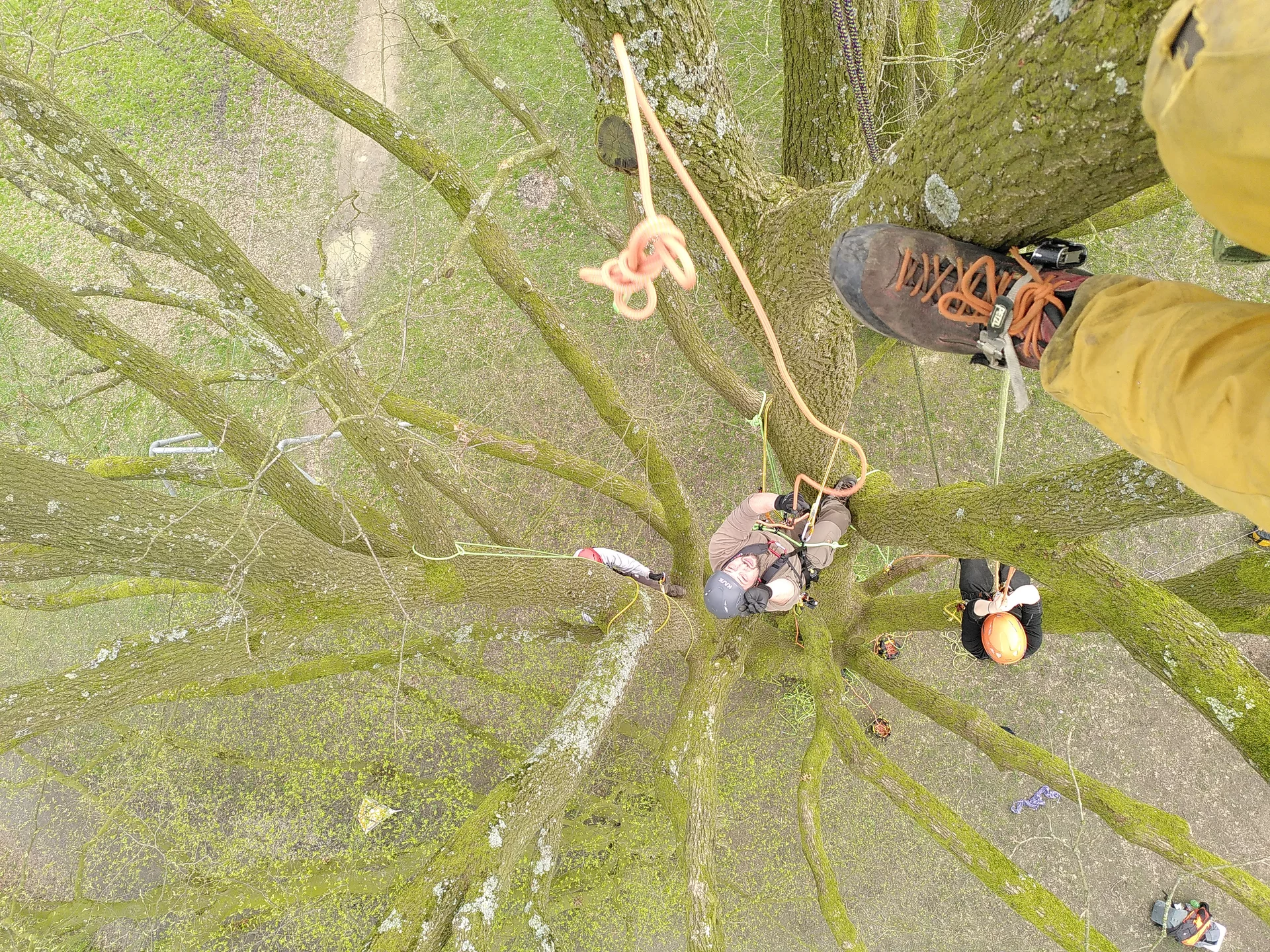 Mit Hilfe der modernen Seilklettertechnik, erreichen wir jeden Ast im Baum.